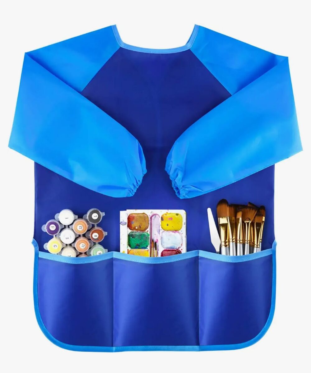 Waterproof Children Art Smock Kids Art Aprons with 3 Roomy Pockets,Painting Supplies (Paints and brushes not included)(BLUE,PINK,YELLOW-OPTIONAL)