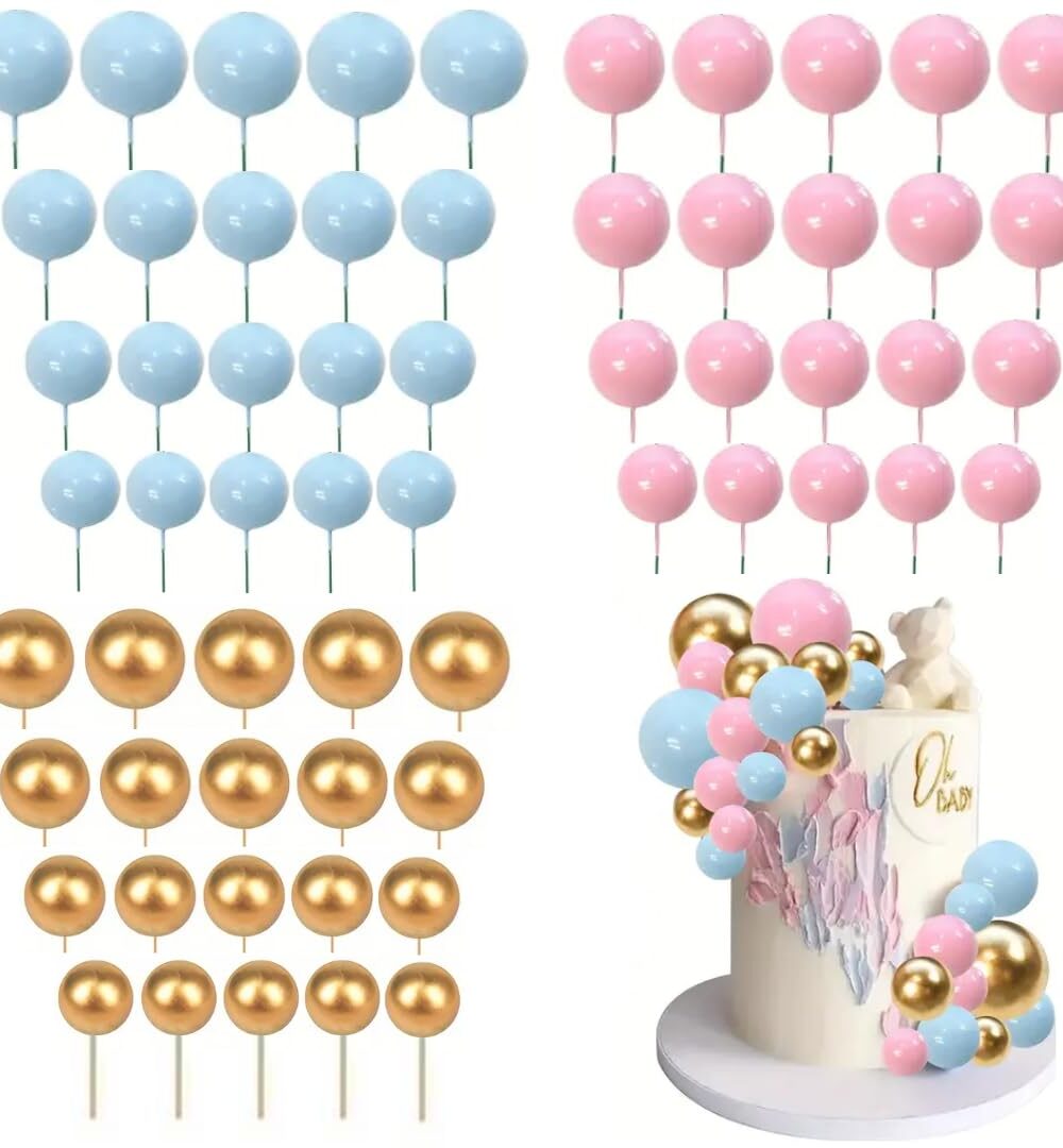 Faux ball, Cake Decoration Golden Ball Silvery Ball Color Ball Cake Topper Birthday Party cupCake Decoration Mixed Color Party Decor Supplies 20 pcs